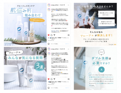 アルージェのアカウントでは「敏感肌を応援してくれるアカウント」をコンセプトに、敏感肌=アルージェというパーセプションを築いていくための戦略を設計しました。