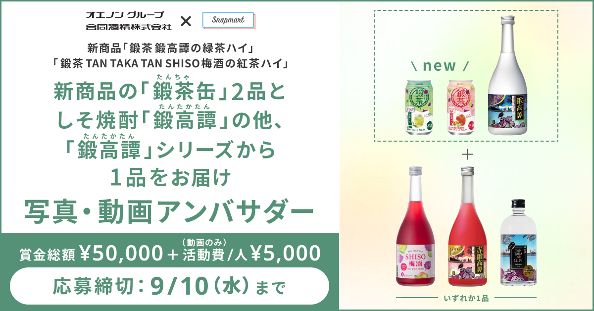 | 商品 | ・鍛茶 鍛高譚の緑茶ハイ ・鍛茶 TAN TAKA TAN SHISO梅酒の紅茶ハイ |