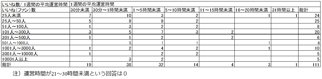 ファン数1万人以上のFacebookページでも、1週間の運営時間は5時間未満