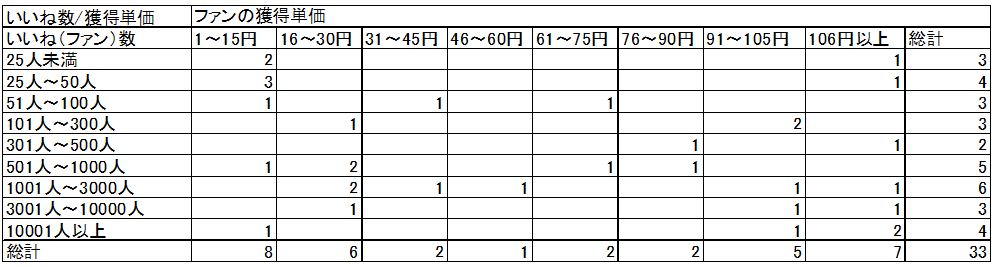 やはりファン数が多いほど、獲得単価が上がっている傾向が見受けられます。