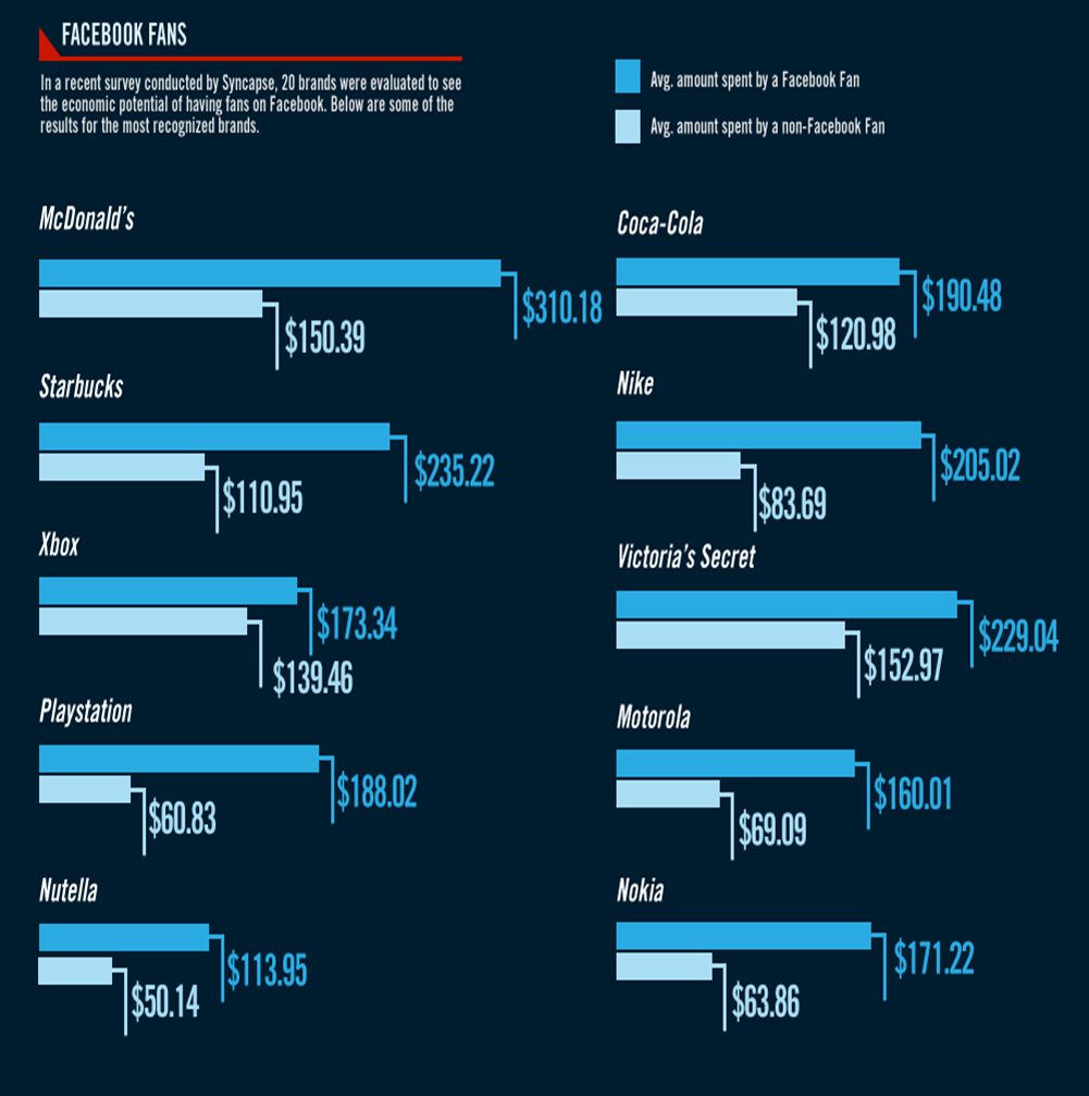 Syncapse社が米国のブランドに対して行った調査によると、多くの企業でFacebookページのファンに対して経済的価値が見受けられました。