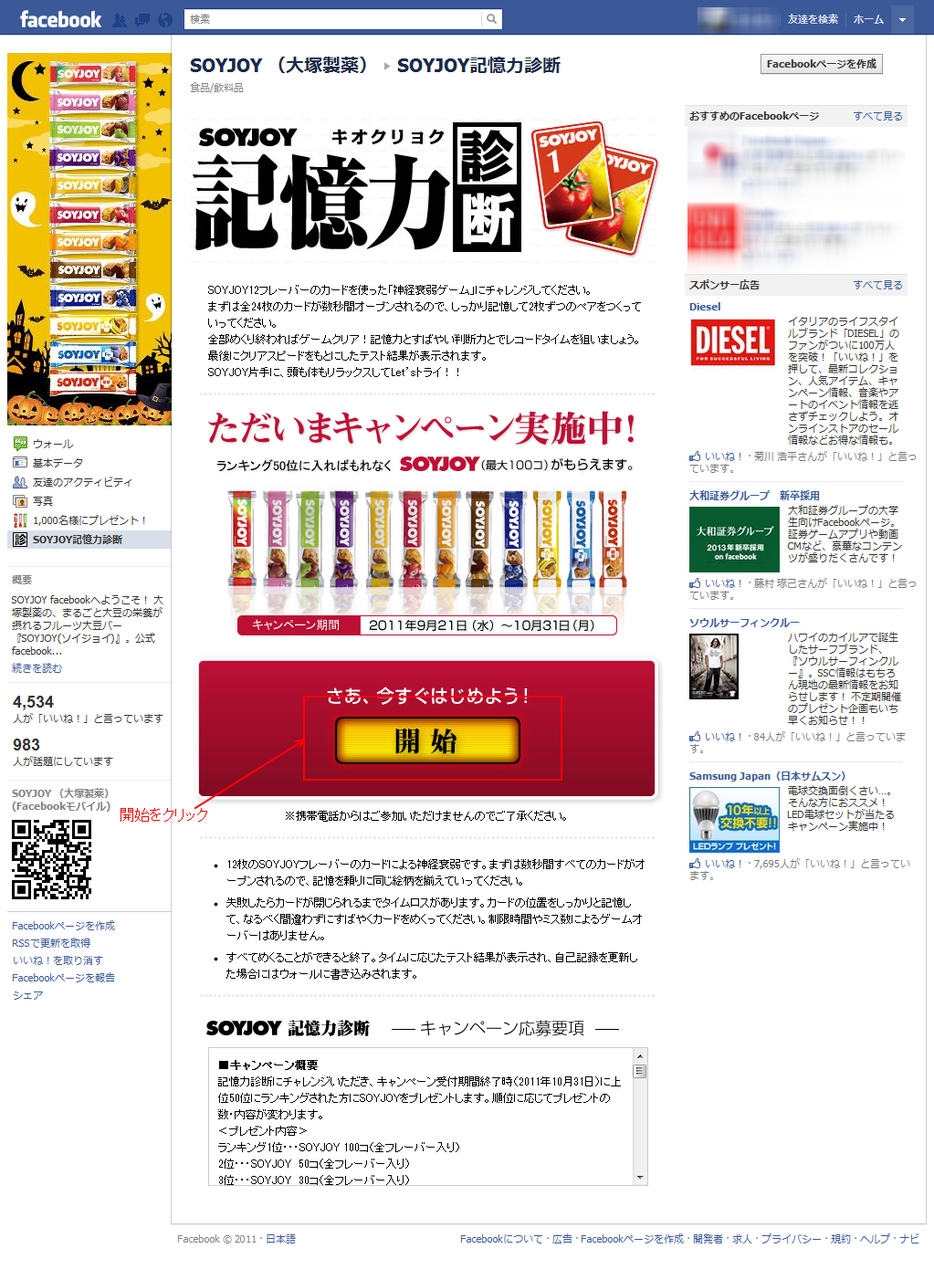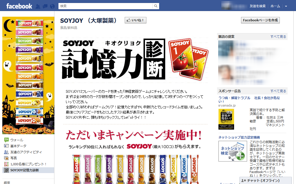 SOYJOYのパッケージが書かれたカードで神経衰弱をして、そのタイムを競います。「ランキング50位以内に入ればもれなくSOYJOYが貰える」といったインセンティブを用意しています。