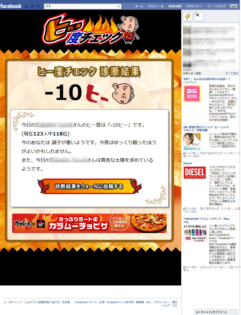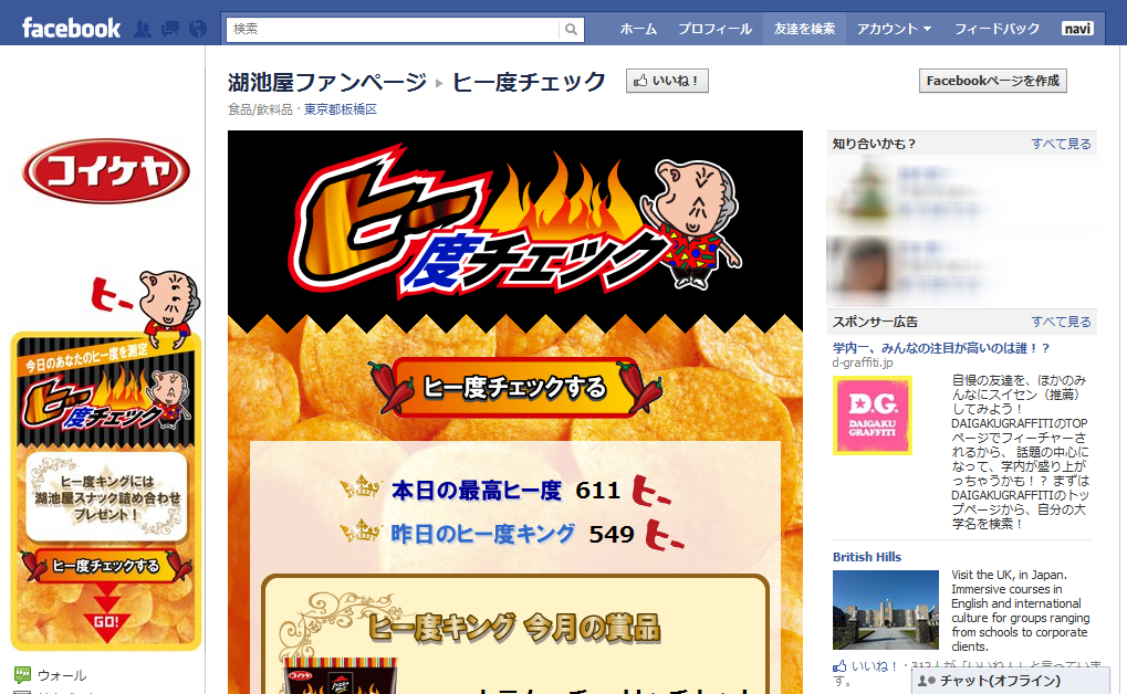 これは湖池屋さんの商品、カラムーチョに絡めたヒー度チェックというアプリです。