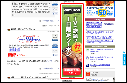 グルーポンは、Googleアドワーズ、アドセンスに大量に広告出稿しています。