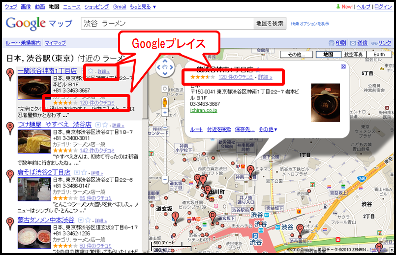 b. GoogleMAPでの表示例 - 「渋谷 ラーメン」と検索