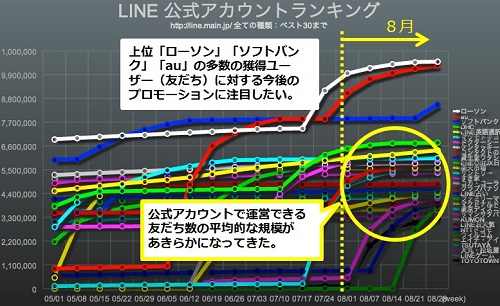 以上、『「ウィルコム」「BEAMS」登場!「ポッキー」はLINEキャラとコラボスタンプ配布も。|LINE公式アカウントランキング【2013年8月末版】』でした。