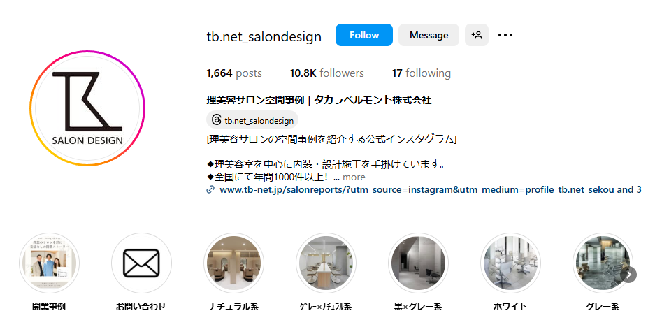 理美容機器やサロン内装のデザイン施工を手掛けるタカラベルモント株式会社は、Instagramを活用して施工事例を積極的に発信しています。