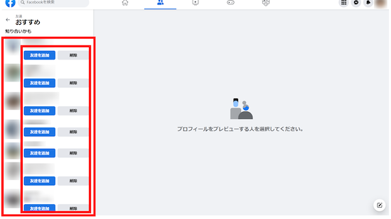 「知り合いかも」というサジェスチョン機能から「友達を追加」をクリックして、自分からもリクエストを送れます。友達を検索できる機能もあるので、知り合いかもに表示される以外の友達を探して、リクエストを申請することも可能です。