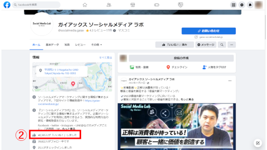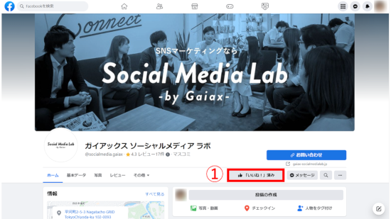 一方、②はFacebookページに対するいいね!であり、このボタンを押すとそのページのファンになれます。