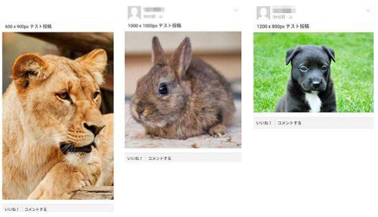 画像を複数枚投稿すると、画像のサイズによって表示が変わる