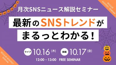 【10/16(木)17(金)開催】最新のSNSトレンドがまるっとわかる!月次SNSニュース解説セミナー