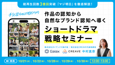 本セミナーでは、『マジ明日』の事例を題材に作品の認知から自然なブランド認知へ導くためのショートドラマ戦略について解説いたします。