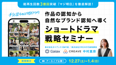 本セミナーでは、『マジ明日』の事例を題材に作品の認知から自然なブランド認知へ導くためのショートドラマ戦略について解説いたします。