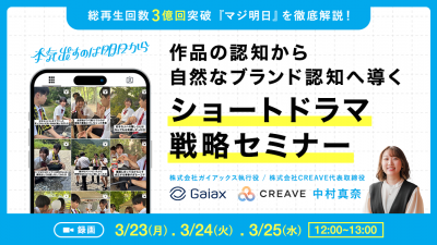 本セミナーでは、『マジ明日』の事例を題材に作品の認知から自然なブランド認知へ導くためのショートドラマ戦略について解説いたします。