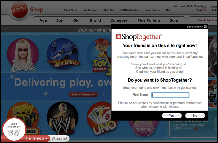バービーで有名なマテル社のECサイトでは、その問題を解決するために、リアルタイムチャットを提供しています。